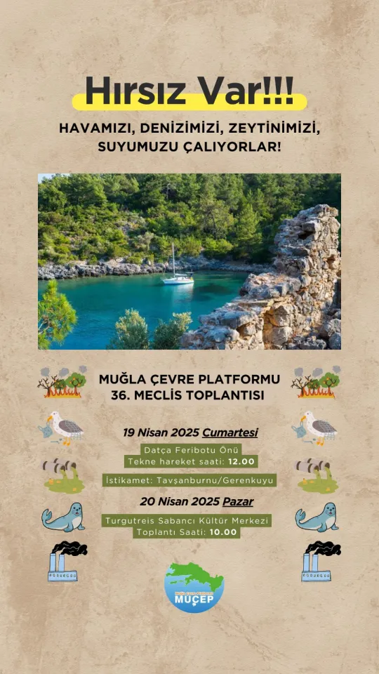 2016 Aralık ayında, Çevre Şehircilik Bakanlığı tarafından “Doğal Sit Alanlarının Ekolojik Temelli Bilimsel Araştırma Projesi” diye bir çalışma ile doğanın yağmalanmasını yasallaştıracak bir girişime karşı; Muğla’nın ilçelerinden doğaya, çevreye duyarlı 75 kişinin katılımı ile kurulan Muğla Çevre Platformu kuruldu. O günden bu yana çeşitli ilçelerde periyodik toplantılar yapan MUÇEP’in 36. Genel Meclisi, bu kez 19/20 Nisan 2025 tarihinde Bodrum Muçep Meclisi’nin ev sahipliğinde gerçekleşiyor. Basın aracılığı ile yazılı olarak yapılan çağrıda, her iki güne de duyarlı tüm Bodrumlular davetli.