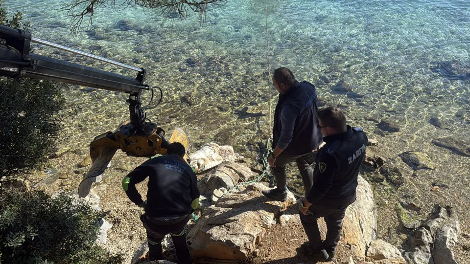 Vücudunun çeşitli bölgelerinde bozulmalar olan deniz kaplumbağası daha sonra belediye ekiplerince vinç yardımıyla bölgeden alındı.
