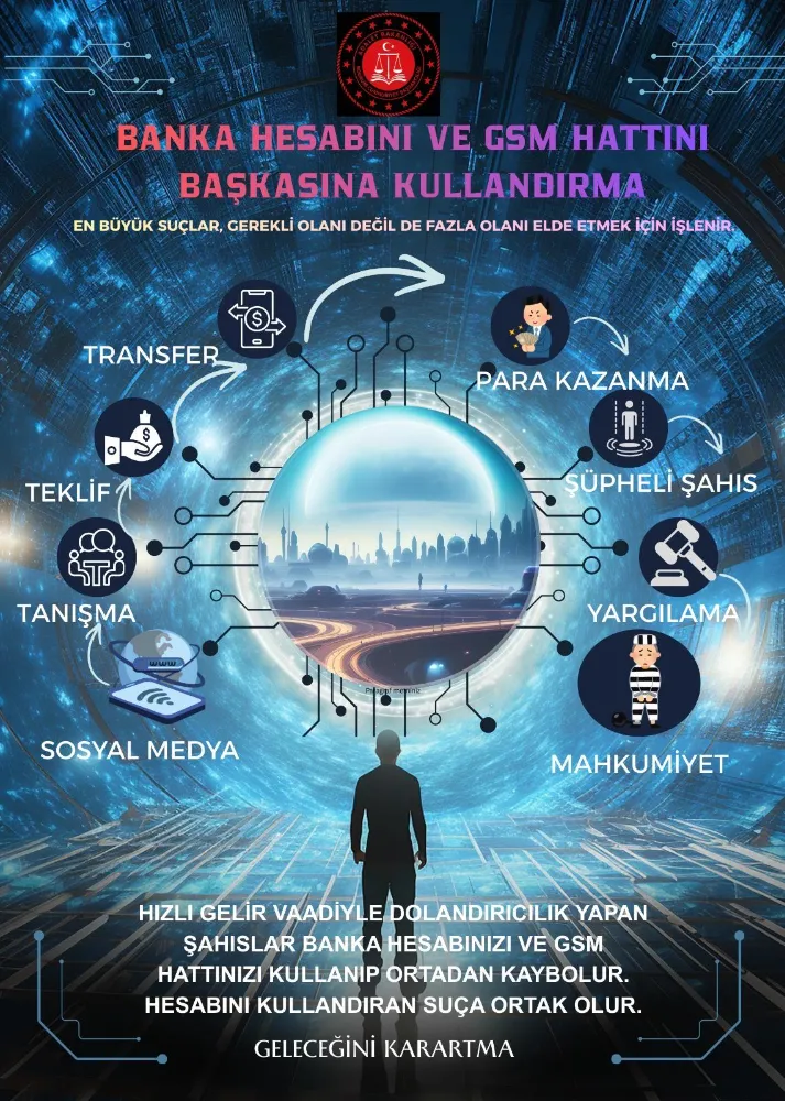Gençlerin banka hesaplarını başkalarına kullandırmasıyla ortaya çıkan ve çoğu zaman geri dönüşü zor mağduriyetlere yol açan dijital dolandırıcılık vakalarına karşı Bodrum Cumhuriyet Başsavcılığı ile Milli Eğitim Müdürlüğü koordinasyonunda yürütülecek çalışma kapsamında, lise öğrencilerine yönelik olarak IBAN kullandırmanın hukuki sonuçları, dijital dolandırıcılık yöntemleri ve adli sicilin korunmasının önemi konularında bilgilendirme yapılması, kolay para” vaadiyle banka hesaplarını üçüncü kişilere kullandırmasının, ilerleyen süreçte adli soruşturma, sanık sıfatı ve kalıcı sicil kayıtları gibi ciddi sonuçlar doğurabildiğine ilişkin gençlerde farkındalık yaratmak için çalışmalar yapılacağı bildirildi.