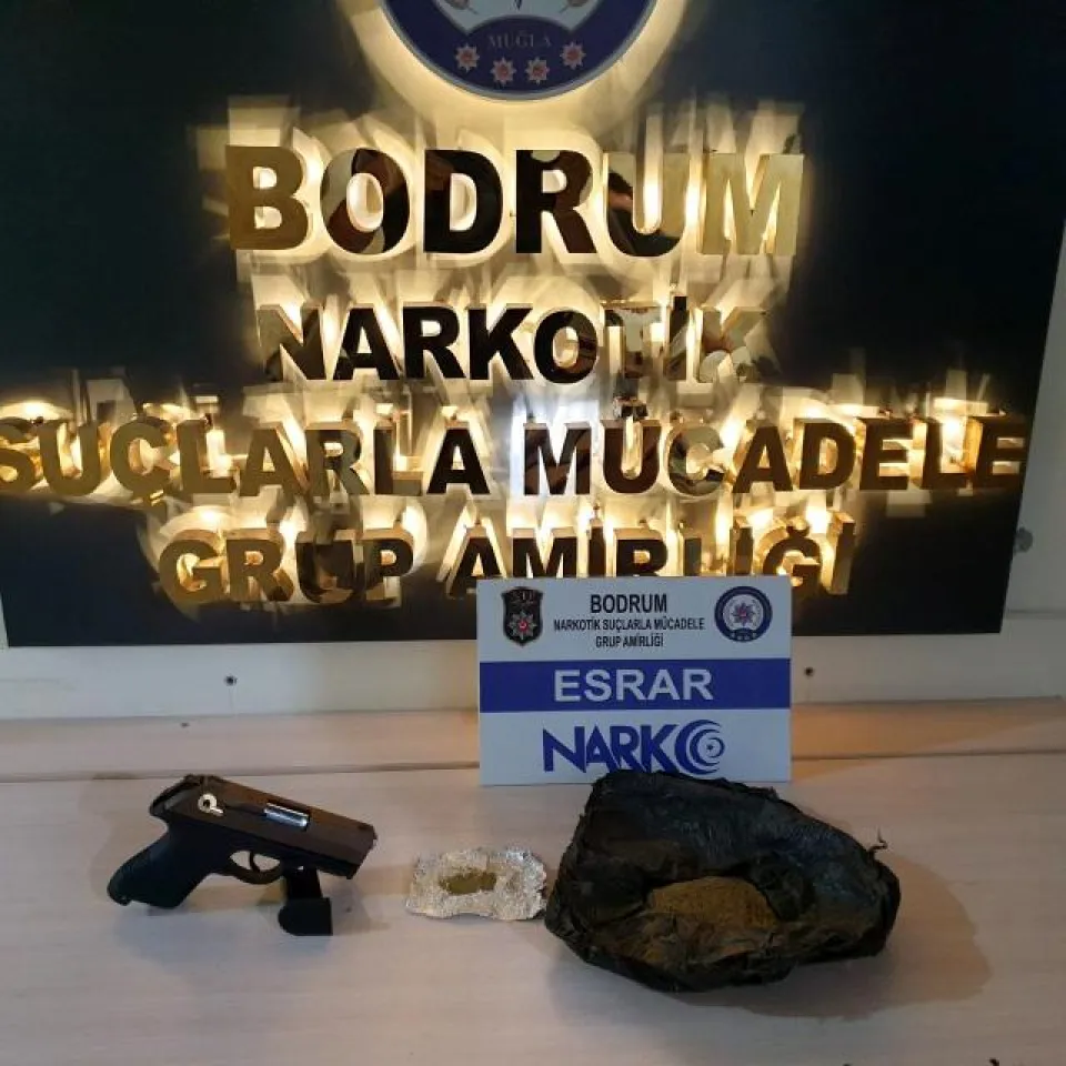Muğla Narkotik Suçlarla Mücadele Şube Müdürlüğü ve ilçelerdeki grup amirliklerince uyuşturucu tacirlerine yönelik 29 ayrı çalışma yapıldı. Bodrum Narkotik ekiplerince yapılan operasyonda 1 adet ruhsatsız tabanca ve 131,38 gram esrar ele geçirildi. Diğer ilçelerde yapılan operasyonlarda 86,88 gr. metamfetamin, 6,57 gr. bonzai, 69,71 gr. skunk, 67,08 gr. eroin, 95 adet sentetik ecza ve 2 adet hassas terazi ele geçirildi.