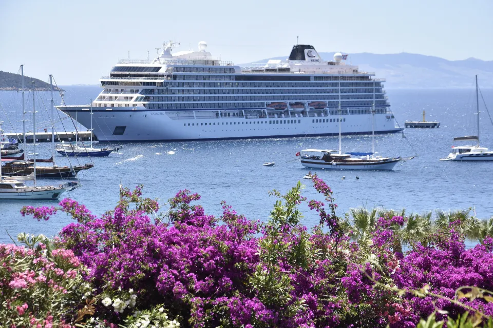 Bodrum ilçesine bu sezon ikinci kez gelen "Viking Sea" isimli kruvaziyer, Bodrum yolcu limanı iskelesine yanaştırıldı.