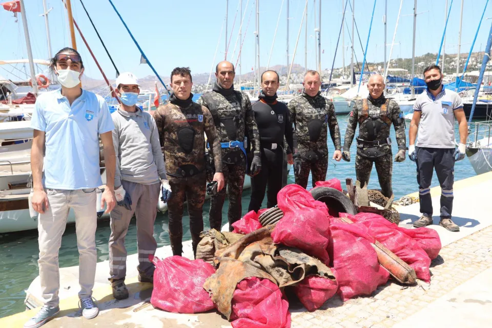 5 Haziran Dünya Çevre Günü etkinlikleri kapsamında, sabah saatlerinde Bodrum Belediyesine bağlı dalgıçlar Bitez Koyu’nda Deniz dibi temizliği gerçekleştirdi. Toplanan atıklar, farkındalık yaratmak için Bitez Ağaçlı Kafe önünde gerçekleşen sergi alanına getirildi.