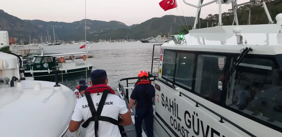 Göcek Sahil Güvenlik ekibince bota alınan İsmet G, Göcek'te bekleyen ambulansa ulaştırıldı.