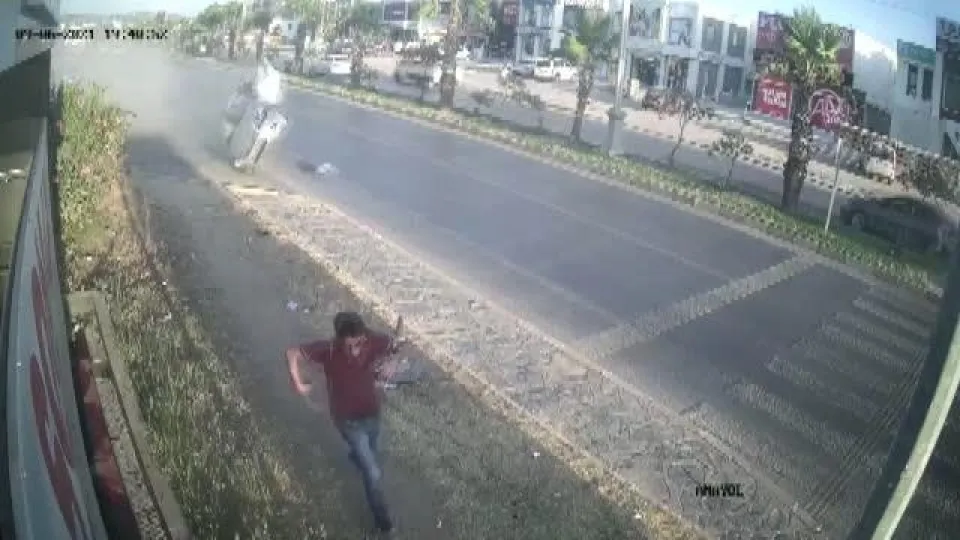 Öte yandan kaza anı çevredeki bir iş yerinin güvenlik kamerasınca görüntülendi.