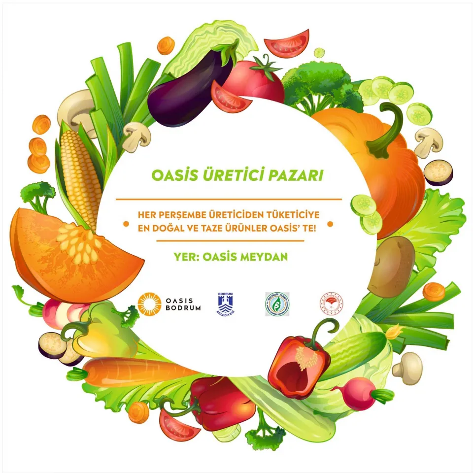 Bodrum’un en doğal ve yöresel ürünleri her perşembe Oasis Bodrum’da yerini alacak. Üreticiden tüketiciye pazarda; sebze, meyve ve Bodrum’a özel yöresel ürünler en taze haliyle Oasis’te sunulacak.