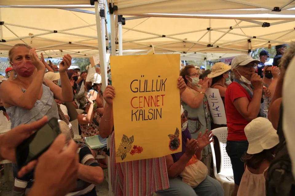Gerekli bilgilendirme için alana gelen Muğla Çevre ve Şehircilik İl Müdürlüğü yetkilileri, ellerinde liman projesine tepki gösteren pankart ve döviz getiren çok sayıda vatandaş tarafından protesto edildi.