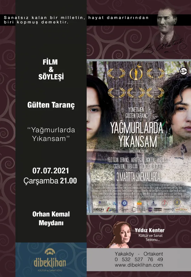 Dibeklihan söyleşileri 7 Temmuz Çarşamba 21:00’de Gülten Taranç ile ve ”Yağmurlarda Yıkansam” film gösterimi ile Orhan Kemal Meydanı’nda devam ediyor.