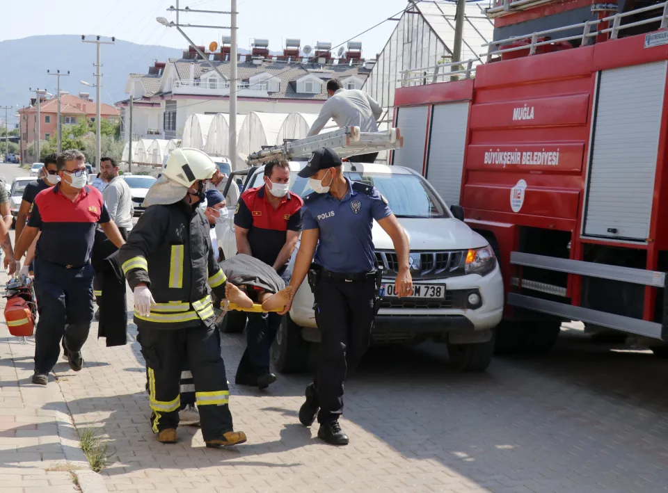 Muğla Büyükşehir Belediyesi Fethiye İtfaiye Grup Amirliği ekibince direkten indirilen Koyuncu'nun hayatını kaybettiği belirlendi.