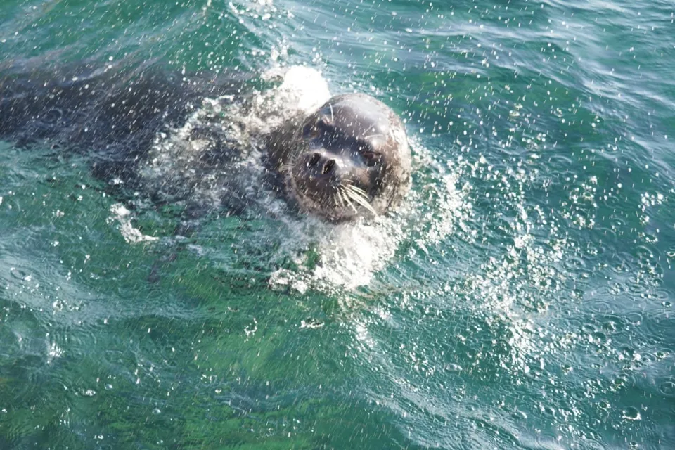 Bodrum ilçesinde sahile gelen Akdeniz foku, özellikle balık tutmaya gelen vatandaşların ve yabancı turistlerin ilgi odağı oldu.