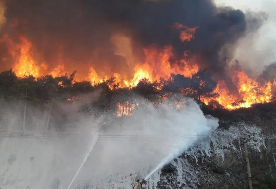 Muğla'nın Marmaris ilçesi saatlerdir süren yangınla boğuşuyor. Saat 13.00'te başlayan yangını 8 ve 10 yaşında iki çocuğun çıkardığı iddia edildi. Çocuklar ifadeleri alınmak üzere Emniyet'e götürüldü.