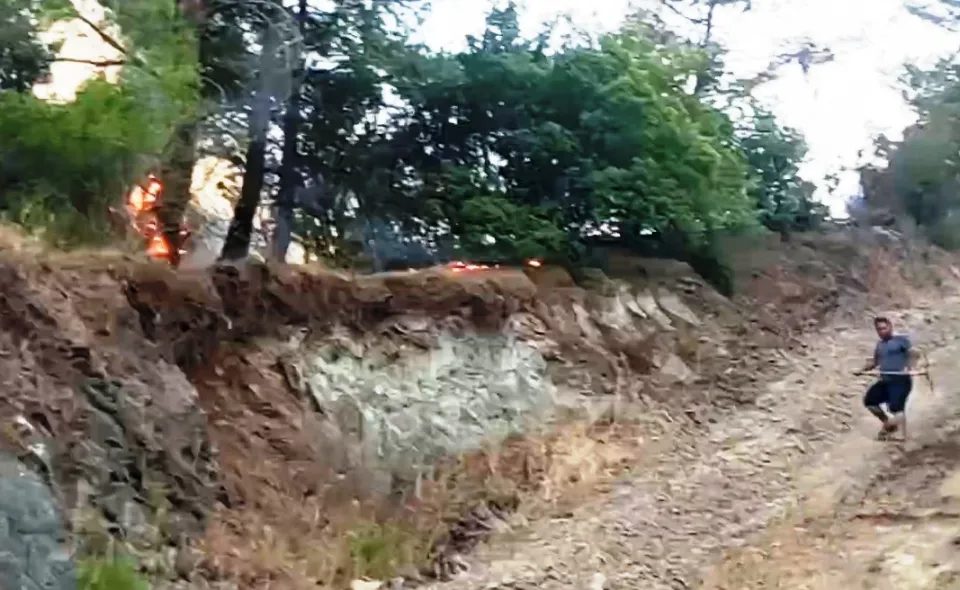 Evet şimdi sizlerle paylaştığım video görüntüleri, dün (31 Temmuz Cumartesi) Ege Bölgesinin tek ulusal televizyonu TR 35 TV’ nin 18.30 daki Ana Haber’ e Canlı bağlantı yaptığım anlardan hemen sonra olduğum yer. Yani Asparan girişli Hisarönü Köyü Mahallesi Kaledibi ( geçidi) mevkiinde Saatler 19.30’u gösterirken… Cumhurbaşkanı Sayın Recep Tayyip Erdoğan kusura bakmasın, bugünkü “Hisarönü Yangınını Nasıl Önleyebilirim? “ diye çözüm ararken aynı saatlerde, çay kapma lüksüm olamazdı!.. Önce VMD!.. Yani Vatan Millet Devlet!..