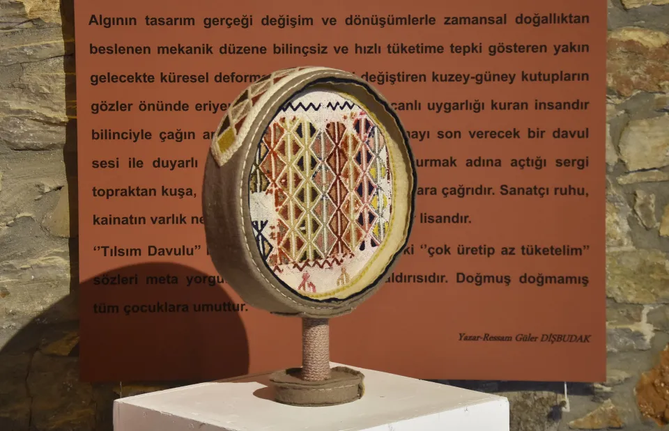 Başka bir çalışmamda ozon tabakasının delinmesiyle güneşin zararlı ışınlarının çok daha fazla zarar vermeye başlamasını anlattım. Yapabileceğimiz neler var? İşte bunun için sergiye 'Uyan ey iyi ruh' adını verdim." dedi.