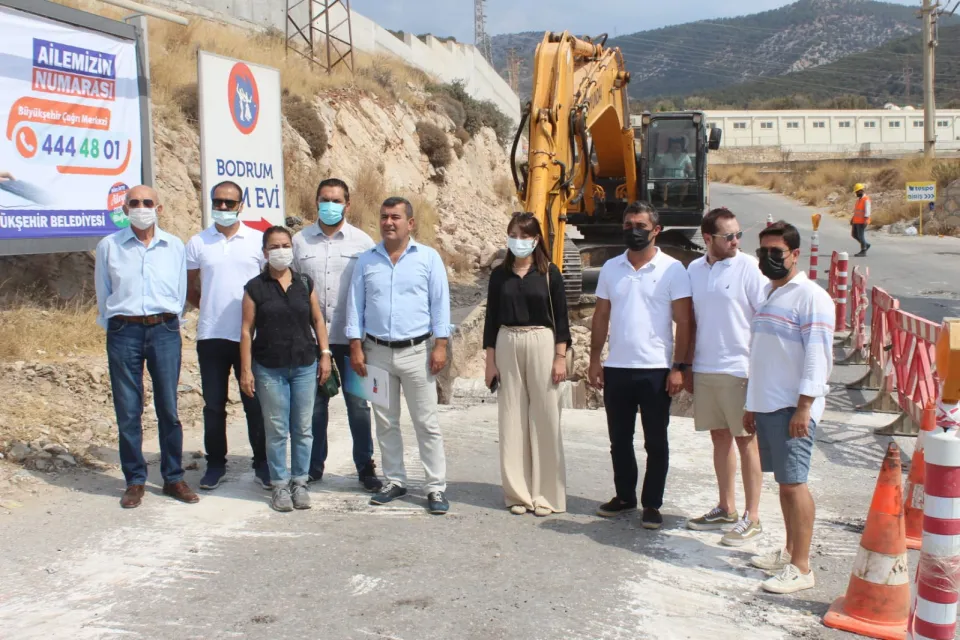 Yeni hastane önünde MUSKİ tarafından kanalizasyon hattı için çalışmaların başlatıldığı görüldü. İlçe Başkanı Karahan, hastaneden çıkacak hattın karayolunun altından geçirilerek Bitez arıtma tesisine bağlanacağını söyledi.