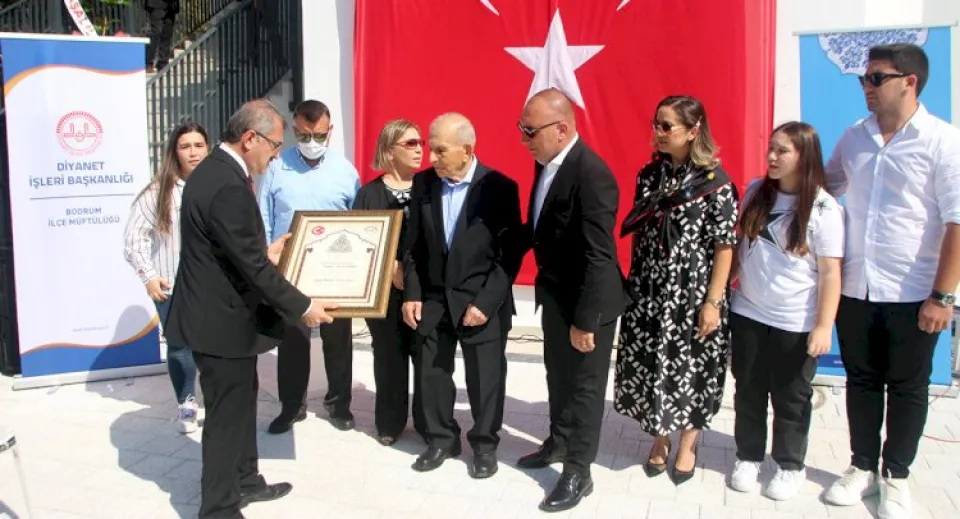 Açılışta Diyanet İşleri Başkanlığının takdir belgesi ile teşekkür plaketi hayırsever Yılmaz ve ailesine Bodrum Kaymakamı Bilgehan Bayar ve İl Müftüsü Yaşar Çapçı tarafından takdim edildi. Açılışın ardından camide Cuma namazı kılındı.