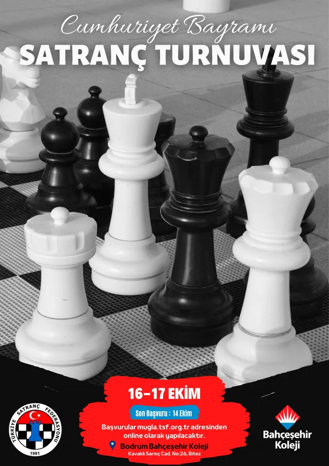 “Bodrum Cumhuriyet Bayramı Satranç Turnuvası” heyecanı 16-17 Ekim tarihlerinde Bahçeşehir Koleji Bodrum Kampüsü’nde yaşanacak.