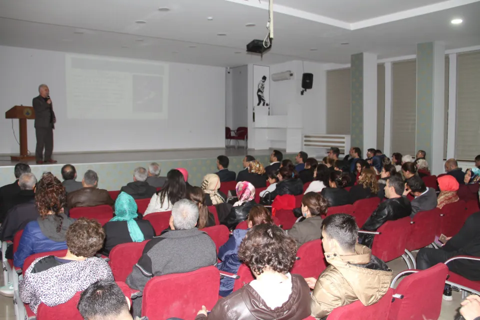 Milas Halk Eğitimi Merkezi Toplantı Salonu’nda önceki akşam saat 20.00’de başlayan konferansa Milas Kaymakamı Eren Arslan, AK Parti Milas İlçe Başkanı Levent Akyer, Milli Eğitim Müdürü İsa Bal, 75. Yıl Milas Devlet Hastanesi Yöneticisi Uzm. Dr. Tarık Çubukcuoğlu, Eğitim Bir-Sen Milas Başkanı Ali Akarca ve vatandaşlar katıldı.