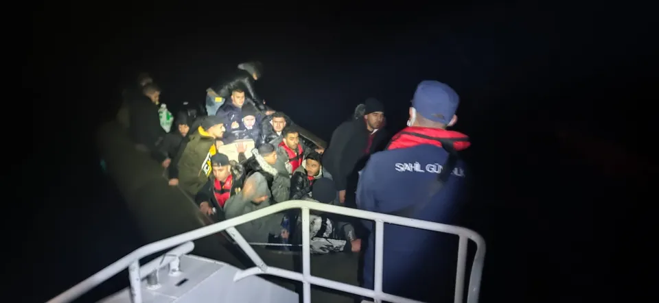 Lastik bottaki 16 düzensiz göçmen, sahil güvenlik ekiplerince yakalandı.