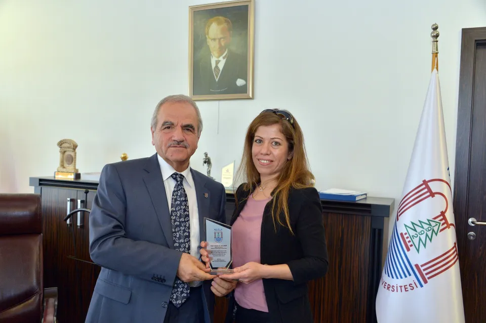 Muğla Sıtkı Koçman Üniversitesi Rektörü Prof. Dr. Mansur Harmandar, uluslararası akademik dünyada büyük ses getiren “Tek Yönlü Magnet” buluşu nedeniyle Üniversite öğretim üyesi Uzman Dr. Aslı Çakır’a plâket verdi.