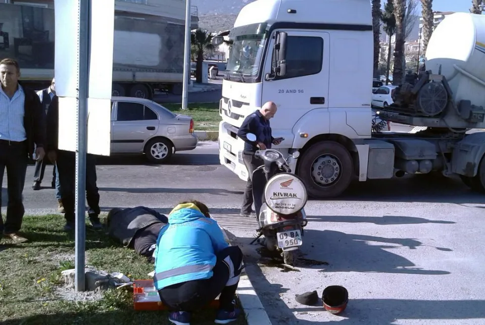 Bozkurt, olay yerine sevk edilen ambulansla 75. Yıl Milas Devlet Hastanesi’ne kaldırılarak tedavi altına alınırken, güvenlik güçleri tarafından kazaya karışan tır sürücüsü ifadesine başvurulmak üzere Milas İlçe Emniyet Müdürlüğü’ne götürüldü. Kazayla ilgili soruşturma devam ediyor.