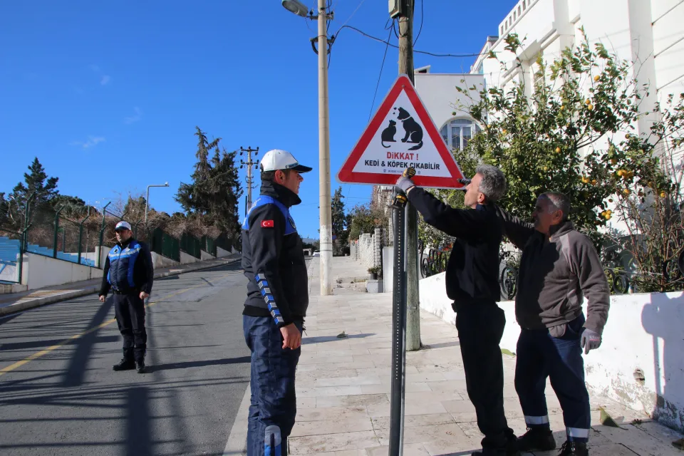 Bodrum Belediyesi Zabıta Müdürlüğü tarafından sokak hayvanları için uyarı levhası takıldı.