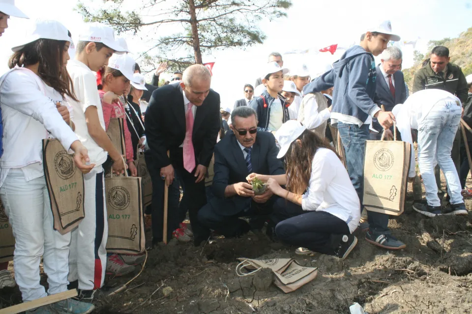 Törene katılan Muğla Orman Bölge Müdür Yardımcısı Vedat Dikici de yaptığı konuşmada eskisi gibi sadece ormansal ürün mantığıyla ormanlara yaklaşılmadığının altını çizerek, “Ormanlarımızda artık koruma kullanma dengesini sağlayarak, vatandaş ve kamunun kullanımı söz konusu, Ormanlarda uygun yerlere ticari ürünlerde dikiliyor. Vatandaş buralardan gelir elde ediliyor. Orman Müdürlükleri olarak artık sadece kereste üretimi mantığından çok daha ileri bir mantıklar ormanlarımızı hem koruyor hem de halkın yararına değerlendiriyoruz” dedi. Konuşmaların ardından Çocuklar ve Daire amirleri birlikte yangının başladığı noktaya sembolik olarak 500 adet kızılçam fidanı dikti.(İHA)