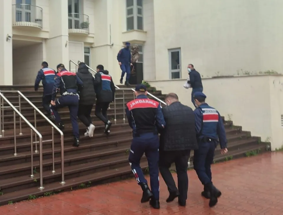 Jandarmadaki işlemlerinin ardından adliyeye sevk edilen zanlılardan G.D. ve E.S. çıkarıldıkları sulh ceza hakimliğince tutuklandı, E.D. ise salıverildi.