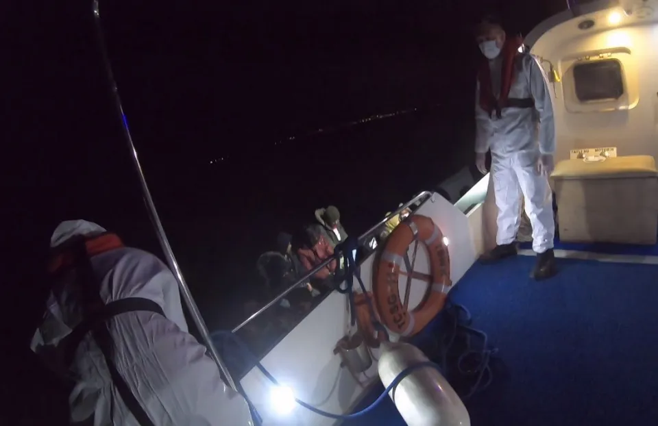 Bodrum ilçesi açıklarında lastik botta 31 düzensiz göçmen yakalandı.