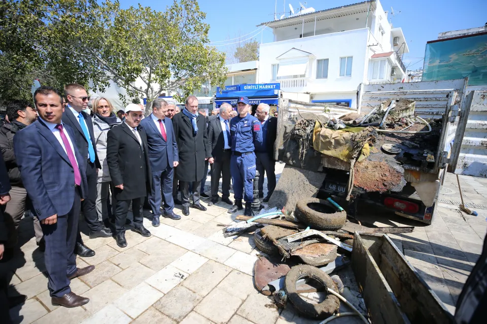 Öte yandan Bodrum Sahil Güvenlik Komutanlığı ile Deniz Polisi tarafından deniz temizliği yapıldı. Temizlikte çoğunluğu plastik, cam şişe ve araç lastiği olmak üzere yaklaşık yarım ton atık çıkarıldı.