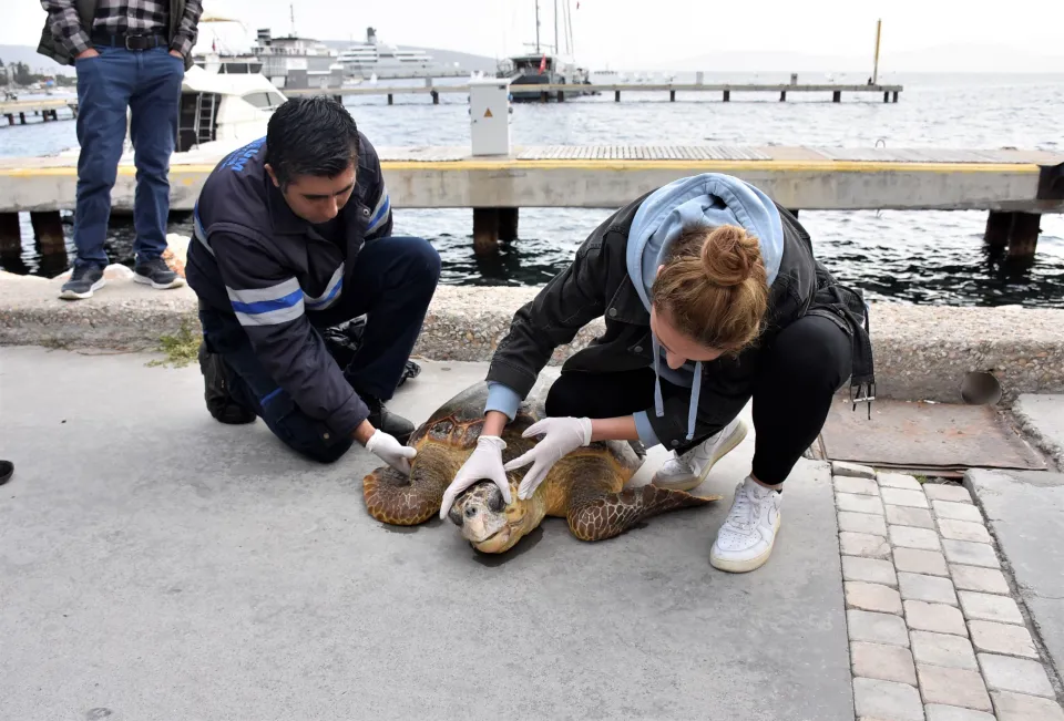 Bodrum ilçesinde hareketsiz halde bulunan deniz kaplumbağası tedaviye alındı.Kumbahçe sahilinde yürüyüş yapan vatandaşlar, suda hareketsiz halde gördükleri caretta carettayı, kıyıya çıkarak Bodrum Belediyesi ekiplerine haber verdi.