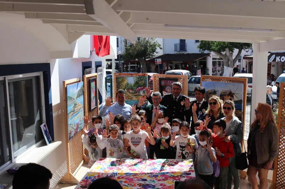 Mahalle muhtarları ve Yalıkavak sakinlerinin hazır bulunduğu açılışta, ilkokul öğrencileri tuval üzerine el baskısı yaptı.