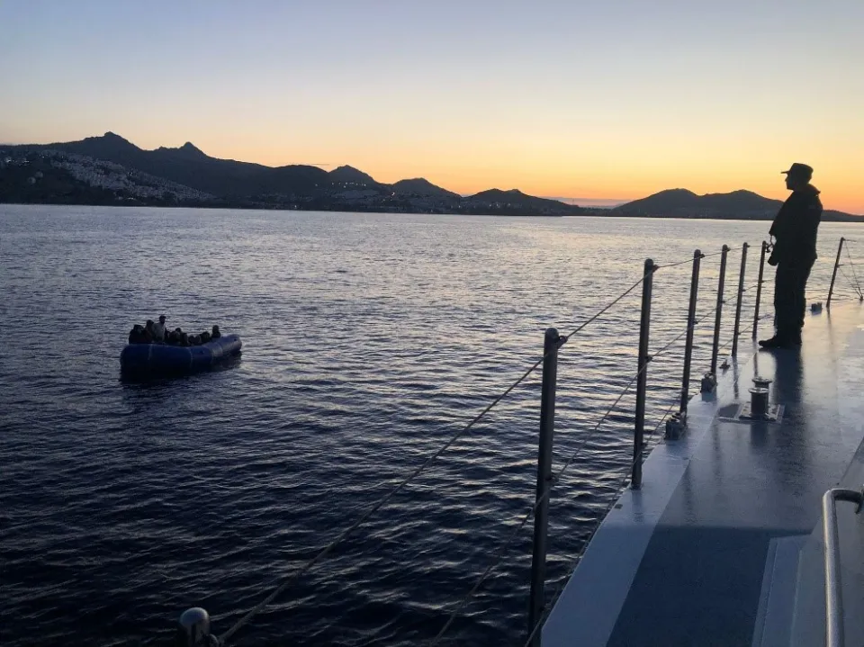 Sahil Güvenlik Komutanlığı ekipleri, Bodrum açıklarında lastik botlarda düzensiz göçmenlerin olduğu bilgisi üzerine bölgeye hareket etti.