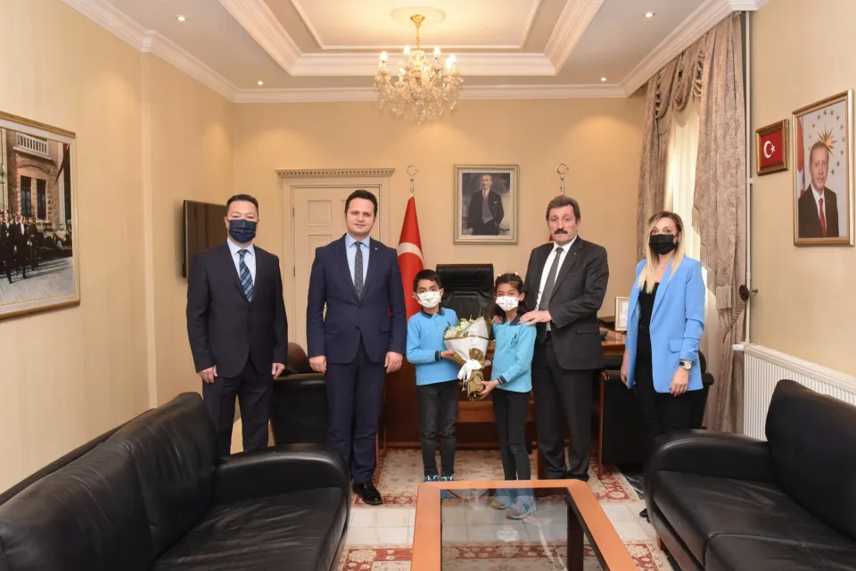 Temsili Muğla Valisi Ozan Alp’e ziyaretinde İl Milli Eğitim Müdürü Emre Çay, Atatürk İlkokulu Müdürü Salih Güleçol, Sınıf Öğretmeni Tülin Algan eşlik etti.