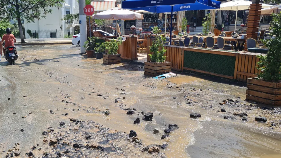 Bodrum ilçesinde, içme suyu isale hattındaki patlama nedeniyle bazı iş yerlerini su bastı.