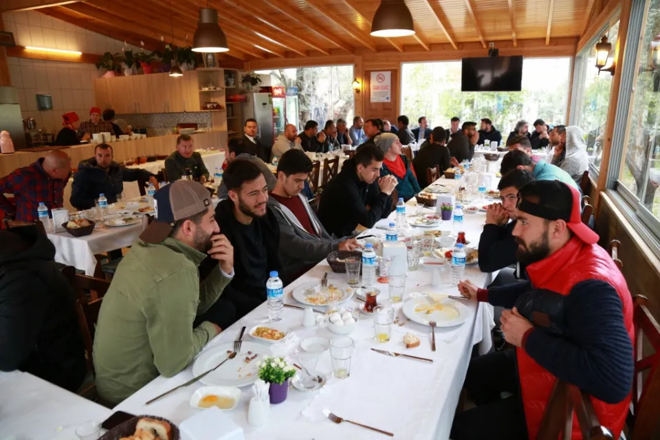 Zerdali Restaurant’ta düzenlenen kahvaltıya Bodrum Belediye başkanı Mehmet Kocadon, Bodrum Esnaf Odası başkanı Erdoğan Başeymez, B.B.Bodrumspor kulüp başkanı Rıza Karakaya, esnaf odası ve B.B. Bodrumspor yöneticileri ile B.B. Bodrumpor futbolcularıyla teknik ekibi katıldı.