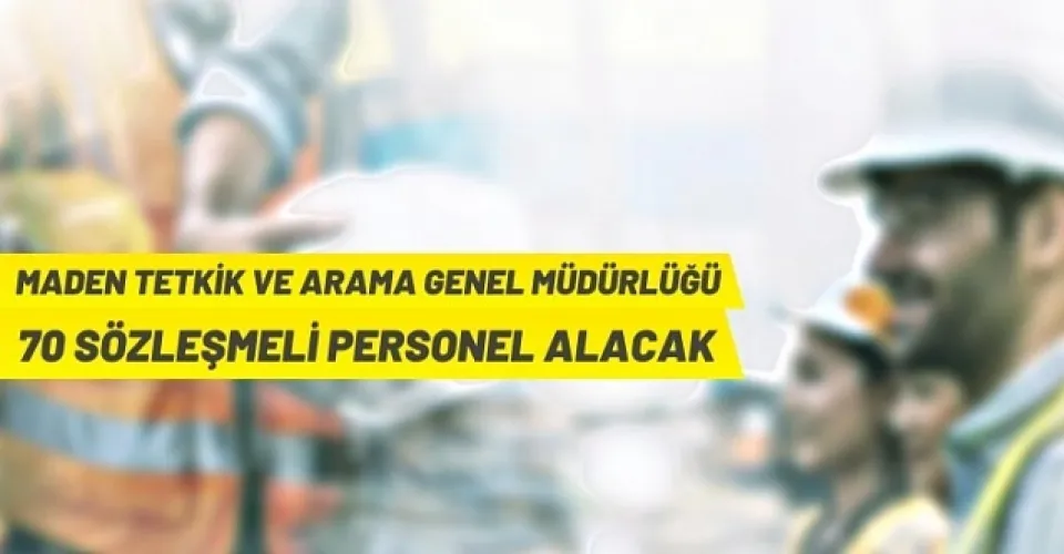Maden Tetkik ve Arama Genel Müdürlüğü, merkez ve taşra birimlerinde 657 sayılı Devlet Memurları Kanunu ve Sözleşmeli Personel Çalıştırılmasına İlişkin Esaslara göre istihdam edilmek üzere 2020 yılı KPSS (B) grubu puan sıralamaları esas alınmak suretiyle yazılı ve sözlü sınav yapılmaksızın 70 sözleşmeli personel alacak.