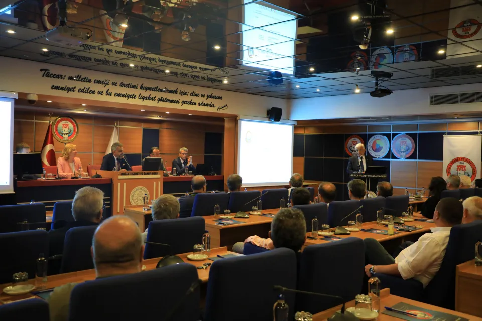 Muğla Ticaret ve Sanayi Odası Meclis üyelerine konuşan Muğla Büyükşehir Belediye Başkanı Dr. Osman Gürün, Muğla’nın tarım ve turizmin ardından kültür kenti olarak da tanınması için çalışmalar yaptıklarını söyledi. Gürün, “Muğla’mızın ana sektörü ne diye sorsalar daha düne kadar turizm denirdi. Şimdi tarım, hayvancılık ve turizm diyoruz. Çünkü başat ürünleri, verimli toprakları ve yüzde 55 kırsalda yaşayan nüfusu ile bir tarım kentiyiz. Aynı zamanda antik kentleri, korunmuş yapısı ve kültürel mirası, yemekleri, dili, müziği ile şehrimiz bir kültür kenti. Muğla’mızı turizm, tarım ve kültür üçayağı üzerinde taşımamız gerekiyor. Muğla’mızın yetiştirdiği ürünleri, değerleri ile ilgili yaptığınız coğrafi işaret çalışmaları çok değerli. Ürünlerimizin markalaşması, bilinmesi ve tescillenmesi için bunları yapmamız gerekiyor. Biz Büyükşehir Belediyesi olarak bunların çalışmalarını sürdürüyoruz, tüm paydaşlarımızla da ortak çalışmaya hazırız” dedi.