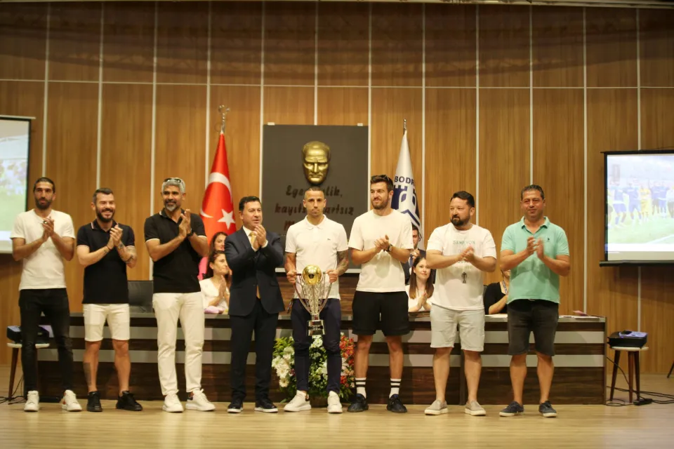 Meclis öncesinde Bodrumspor’un TFF 1.Lig’e yükselmesi coşkuyla kutlandı. Şampiyonluk kupasının getirildiği kutlamaya Bodrumspor Başkanı Rıza Karakaya, yöneticiler, Teknik Direktör İsmet Taşdemir, takım kaptanları Erkan Değişmez, Yekta Kurtuluş, Burhan Eşer ile Celal Dumanlı ve taraftarlar katıldı.