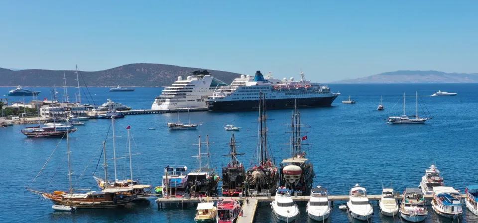 Bahamalar bayraklı "Seabourn Encore" ve "Blue Sapphire" adlı kruvaziyerler Muğla'nın Bodrum ilçesine geldi.