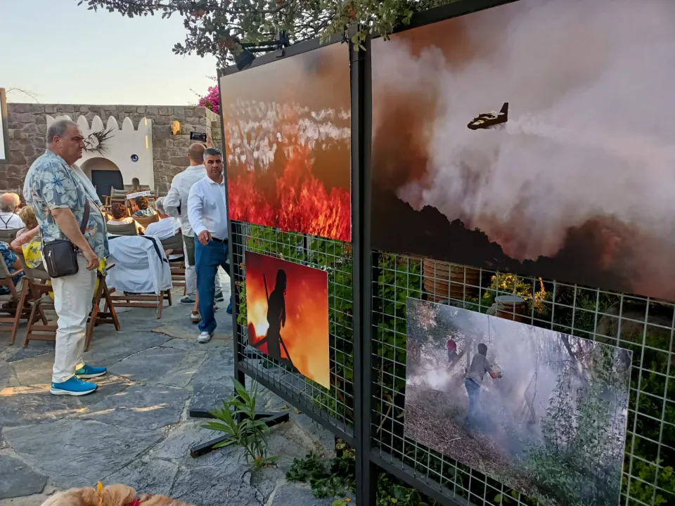 Bodrum'da yaşamını sürdüren foto muhabiri Mehmet Can Meral'in, yangınlarda çektiği fotoğraflardan oluşan sergisi açıldı.