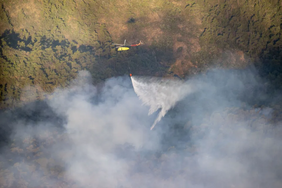 Tarım ve Orman Bakanı Vahit Kirişci ve İçişleri Bakanı Süleyman Soylu da helikopterle yangın bölgesinde incelemede bulundu.