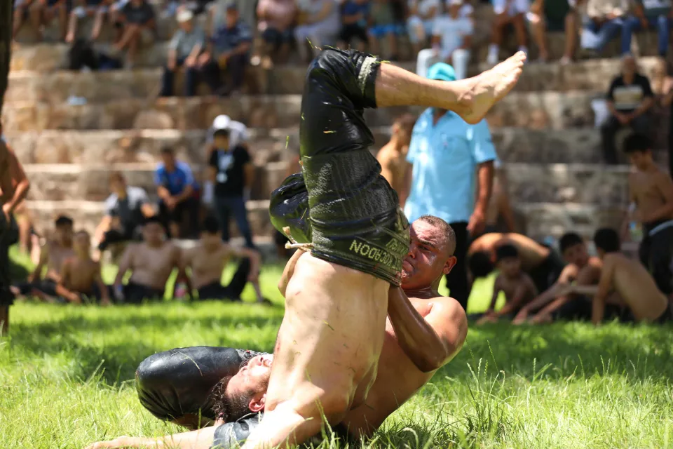Bodrum ilçesinde düzenlenen Bodrum Yağlı Güreşleri'nde başpehlivanlığı Ali Yanatma kazandı.