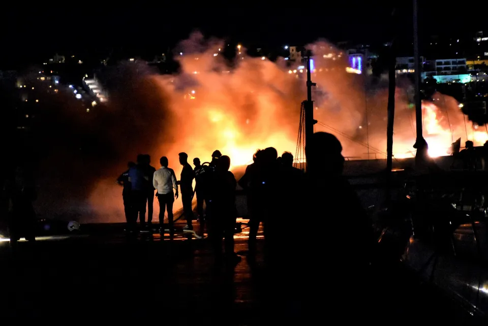 Gümbet koyunda iskeleye bağlı 21 metrelik motoryatta gece saatlerinde henüz belirlenemeyen bir nedenle yangın çıktı.