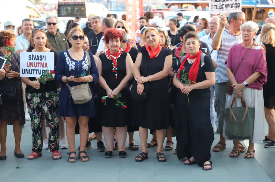 Bodrum Belediye meydanında yapılan anma etkinliğine CHP İlçe Başkanı Halil Karahan, CHP’li belediye meclis üyeleri, sivil toplum örgütleri, dernek yöneticileri, yazarlar ve edebiyatçılar katılırken ellerinde” Sivas’ın Işığı Sönmeyecek, Yakanları Affetmiyoruz Ak’layanlarıda Affetmiyoruz, Sivas İnsanlık Suçudur, Zalime ve Zulme Karşıyız” yazılı dövizler basın açıklaması sırasında sık sık Sivas’ın Hesabı Sorulacak, Sivas’ı Unutma Unutturma ve Faşizme Karşı Omuz Omuza sloganları attı.