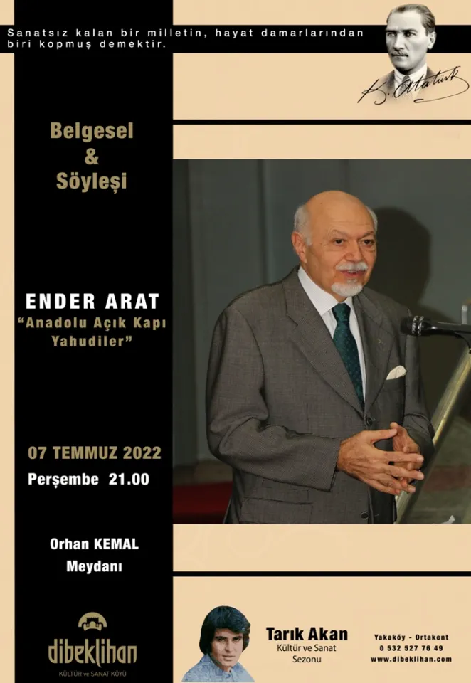Dibeklihan – Orhan Kemal Meydanı’nda 7 Temmuz 2022 saat 21:00’da gerçekleşecek etkinlikte, tarih boyunca Türk topraklarına sığınan Yahudilerin anlatıldığı ve bu konudaki belgesel filmin, (45 dakikalık) gösterildiği bir etkinlik gerçekleşecek. Anadolu açık kapı – Yahudiler konusu konuşmacı Ender Arat tarafından anlatılacaktır.