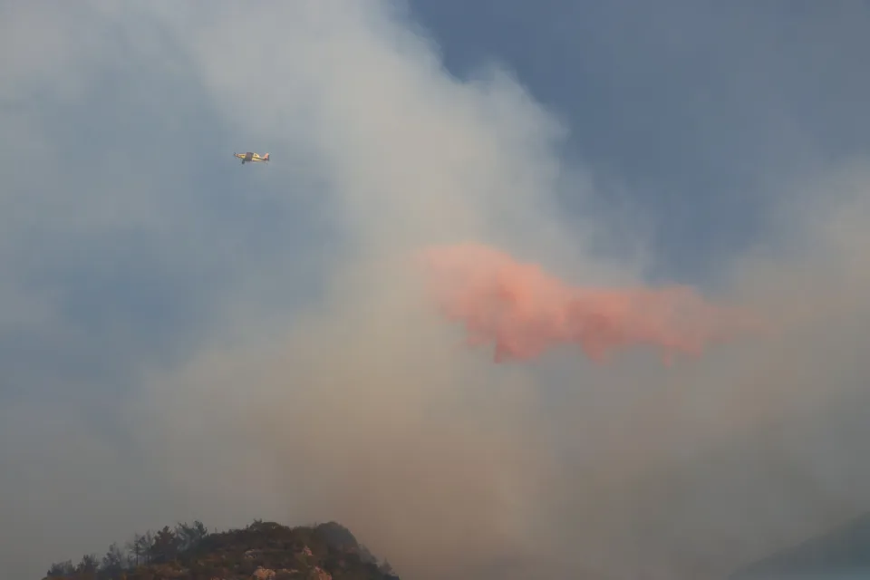 Datça ilçesindeki orman yangınına havanın aydınlanmasıyla birlikte 5 uçak ve 12 helikopterlik hava gücüyle müdahale yeniden başladı.