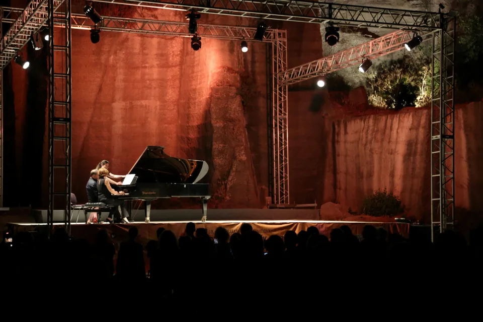 İspanyol piyanistler Juan Lago ve Belen Navarro, tarihi taş ocağındaki açılış konserinde Fransız besteci Claude Debussy’nin 1912 yılında yazdığı “Images pour Orchestre No 2” başlıklı eserinden iki piyano için aranje edilmiş, "Iberia” adlı bölümü seslendirdiler. Daha sonra İspanyol ikili, seslendirdikleri eserle izleyiciyi yine İber Yarımadası’na götürdü. Juan Lago ve Belen Navarro ikilisi, bu defa Rus besteci Nikolai Rimsky-Korsakov tarafından 1887'de bestelenen, İspanyol halk melodilerine dayanan beş bölümlük bir eser olan “Capriccio Espagnol Op34” isimli yapıtla izleyicinin büyük beğenisini topladı. Programda son eser Maurice Ravel tarafından yazılmış “Rapsodie Espagnole” idi. 1907 ve 1908 yılları arasında bestelenen rapsodi, ilk kez Paris'te müzikseverlerle buluşmuştu. Konserde piyano için aranje edilmiş eserleri seslendiren İspanyol ikili daha sonra seyircinin alkışlarıyla tekrar sahneye gelerek bis yaptı ve geceye veda etti.