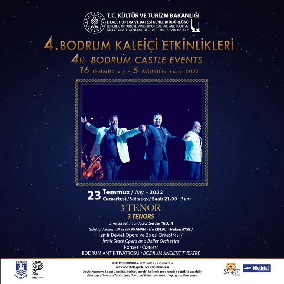 Bu kapsamda düzenlenen “3 Tenor” konserinde, Orkestra Şefi Serdar Yalçın yönetiminde, İzmir Devlet Opera ve Balesi Orkestrası ünlü tenorlara eşlik edecek.