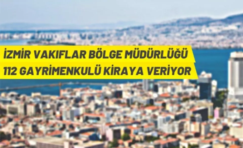 İzmir Vakıflar Bölge Müdürlüğü, İzmir ve Manisa'da 112 adet Vakıf taşınmazını "Vakıf Taşınmazları Kira Genel Şartnamesi" dahilinde 26 Temmuz 2022 Salı günü İzmir Vakıflar Bölge Müdürlüğü Hizmet Binasında başlayacak ihale ile 2886 sayılı Kanunun 45. maddesine göre açık teklif usulü ile kiraya verecek.