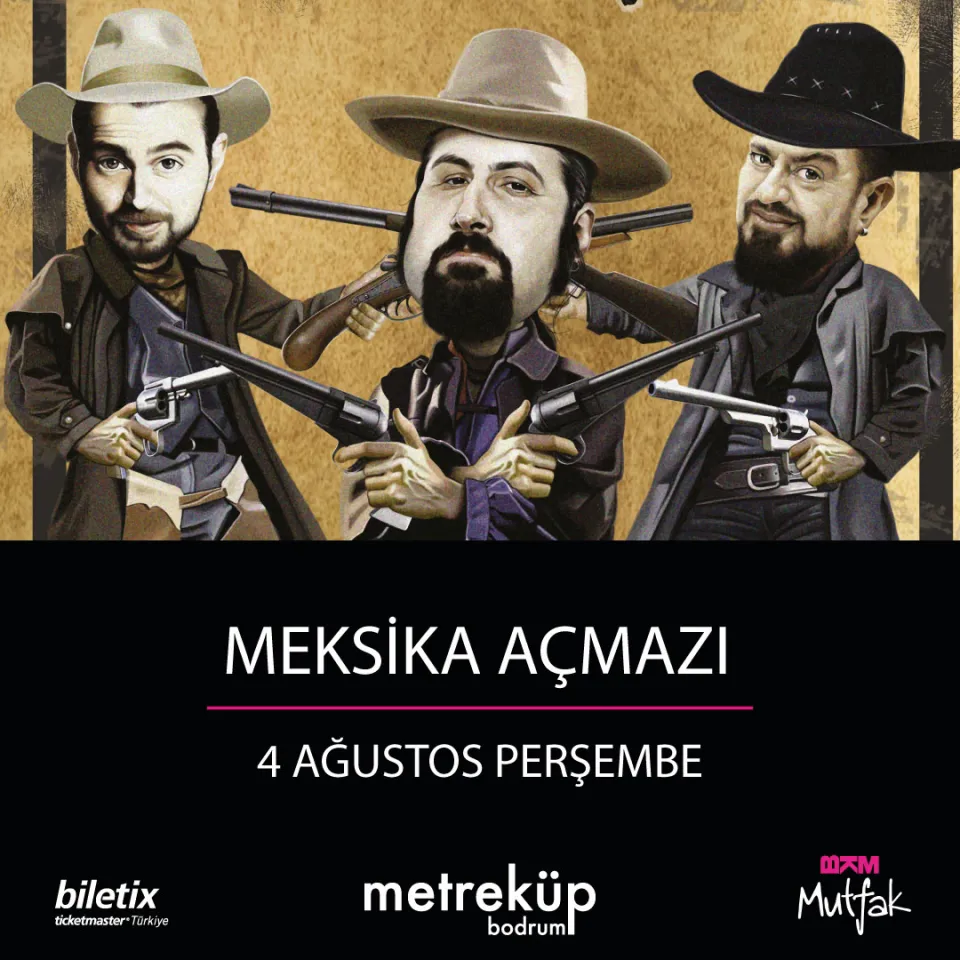 Türkiye'nin açık ara en çok dinlenen mizah programı olan Meksika Açmazı Mesut Süre, Anlatanadam ve Fazlı Polat'ın benzersiz sahne performanslarıyla Metreküp Bodrum Açık Hava sahnesinde!