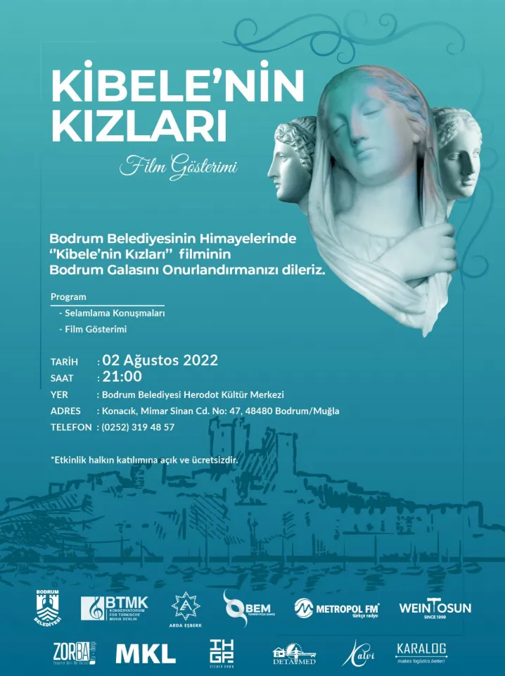Kibele’nin Kızları filminin galası; Bodrum Belediyesinin himayelerinde Sanat, siyaset ve kültür insanlarının katılımıyla 2 Ağustos 2022 Salı günü, saat 21.00 de Herodot Kültür Merkezinde yapılacak.